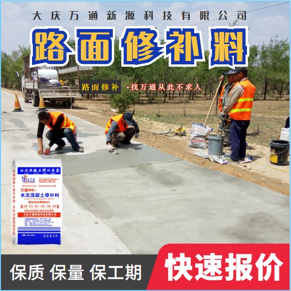 大慶萬通新源科技有限公司獨有的混凝土路面高強速補料,是水泥混凝土路面病害修復的好材料。疲勞、凍融循環、彎曲壓力、滲水和基層破壞等原因都會引起水泥路面的破損,從而帶來高昂的維護費用。與以往的剛性修補方法不同,混凝土水泥路面維修速補膠提供了一種獨特的柔性修補產品和技術,高柔性、高抗拉性,可跨伸縮縫施工和高抗壓性使得混凝土快補產品為水泥混凝土路面提供了******性的修補。傳統的剛性修補方案,如環氧砂漿和快干水泥產品,由于其自身的粘結失效,抗疲勞性低以及與原路面不同的伸縮系數,修補面會在短時間內失效或產生新的裂縫,需要反復修補,有效期短且費用高昂。大慶萬通新源科技有限公司的混凝土水泥路面維修速補膠可以隨原路面一起伸縮,移動,從而避免了粘結失效和產生新裂縫。萬通快補產品優異的粘結性、柔韌性和高防滑性,特別適用于水泥路面的淺層粘合修補,多邊角混凝土板層修補,跨伸縮縫修補以及路面沉陷修補。萬通混凝土病害修補料針對混凝土起皮起沙、斷板裂縫、蜂窩麻面、坑槽露石子、漏筋掉皮、橋梁的掉皮漏筋快速通車使用時間長。應用萬通快補產品,施工后一天就可以恢復交通。大慶萬通新源科技有限公司的萬通水泥路面維修速補膠適用于高速公路、機場路面、農村村村通路面、廠坪、學校操場、市區公路、小區路面、橋梁、水泥路面的修補。使用萬通特快補材料修補路面可以一勞永逸! 水泥地面起砂怎么辦,混凝土修補劑混凝土地面起砂,混凝土地面修補,地面起砂怎么辦,